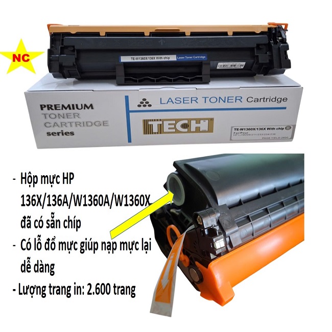 Hộp mực có chíp HP 136X, 136a, (W1360X), M211d, M211dw, M236dw, M236sdw, m209dwe, m209dw, m233dw, m233 sdw, m234sdw, 234dw